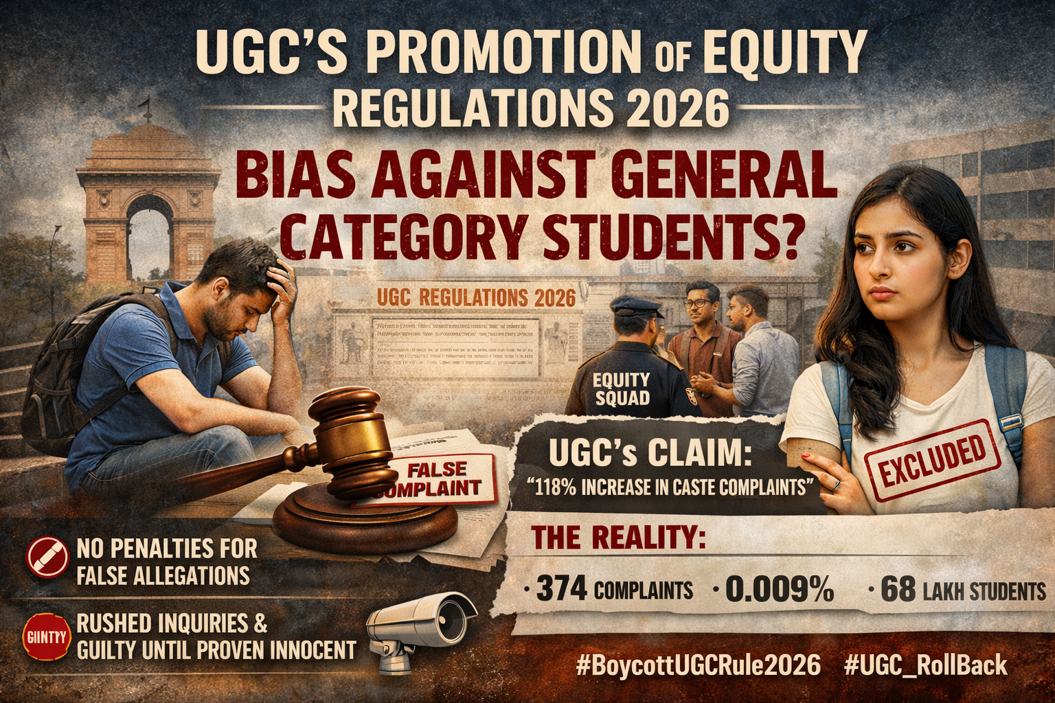 Social media is exploding with outrage — hashtags like #BoycottUGCRule2026, #UGC_RollBack, and #UGC_वापस_लो trend as students, alumni, and influencers label it “apartheid on campuses,” “reverse discrimination,” and a betrayal of merit. Petitions demand immediate withdrawal, arguing it deepens caste divides instead of healing them. Prominent voices, including journalists and activists, call it a disaster that could drive general category students (especially girls) away from public institutions. The rules risk turning campuses into zones of fear and polarization. As HEIs rush to comply, the backlash grows louder: Will this promote genuine harmony, or institutionalize bias and destroy trust? The mounting calls for rollback suggest the latter — and a demand for fair, constitutional revisions that protect every student equally.